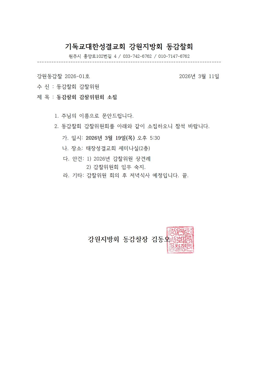 동감찰 감찰위원회 소집 - 260319(목)